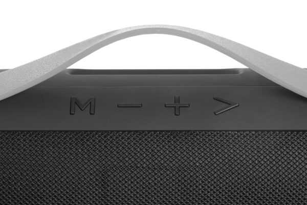 Bocina portátil con bluetooth. Batería de litio. En la parte superior asa para transportar y botones para seleccionar el modo bluetooth, play, pausa, retroceder, avanzar, aumentar y disminuir volumen. Permite recibir y colgar llamadas. Micro USB para cargar batería, entrada de audífonos y ranura para TF card. Duración de la batería aprox 5 hs. (esto dependerá del volumen utilizado) Incluye cable USB para carga.