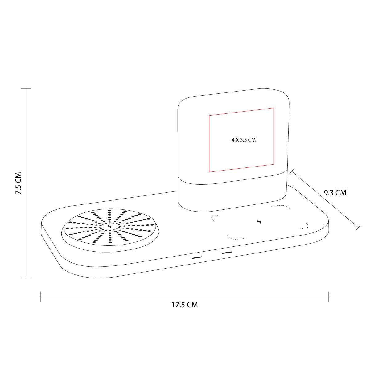 Cargador inalámbrico para smartphone y earbuds. Incluye lámpara touch con 3 diferentes intensidades. Salida USB para conectar otro dispositivo como por ejemplo un smartwatch. Incluye cable auxiliar tipo C y caja individual.