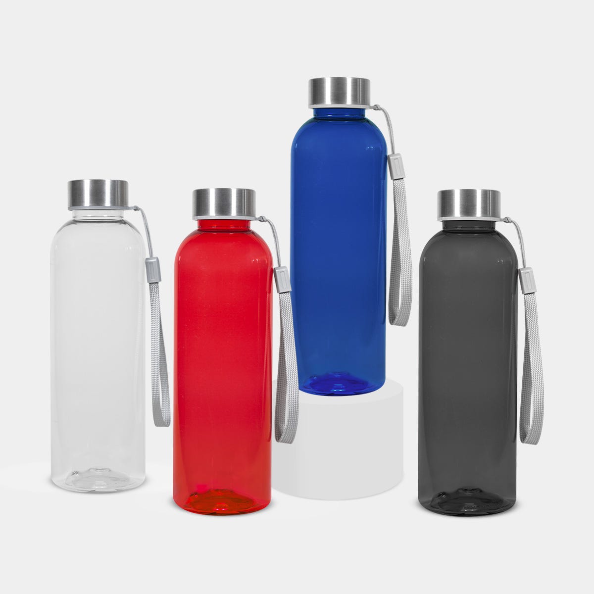 Pared sencilla de plástico. Tapa metálica con sistema de rosca, incluye un asa de tela para transportarla fácilmente. Puede presentar ligeras variaciones estéticas propias del proceso de manejo y almacenamiento, sin afectar su funcionalidad. Capacidad: 550 ml.