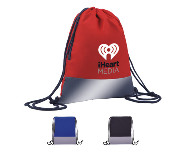 Morral de poliéster 600D con jaretas, compartimento lateral con cierre. Banda reflejante en la parte inferior.