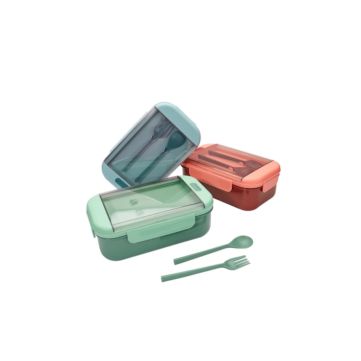 Contenedor para almacenar alimentos. Al interior cuenta con división para separar tu comida. Su tapa es con cierre hermético para evitar derrames. Incluye cuchara, tenedor de plástico y caja individual. Medidas: 21.5 x 8 x 12.5 cm.