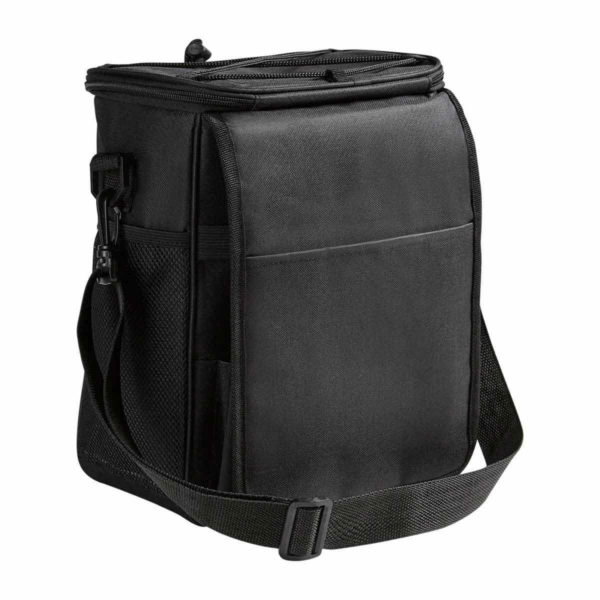 Bolsa principal con función de hielera. Incluye bolsa frontal con 3 compartimentos internos para el set de cuchillo, espátula y tenedor. Incluye asa para colgar en hombros y 2 bolsas laterales de red.