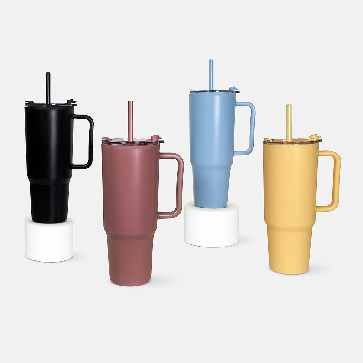 Doble pared. Pared interna y externa de plástico. Tapa de plástico con cierre de push. Sobretapa de silicón con ranura especial para popote. Incluye popote y caja individual. Capacidad: 1130 ml.